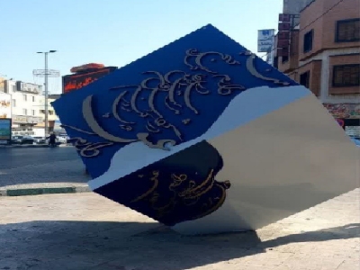 رنگآمیزی و پاکسازی المان مکعب خوشنویسی چهارراه ولیعصر توسط سازمان زیباسازی شهرداری قزوین -