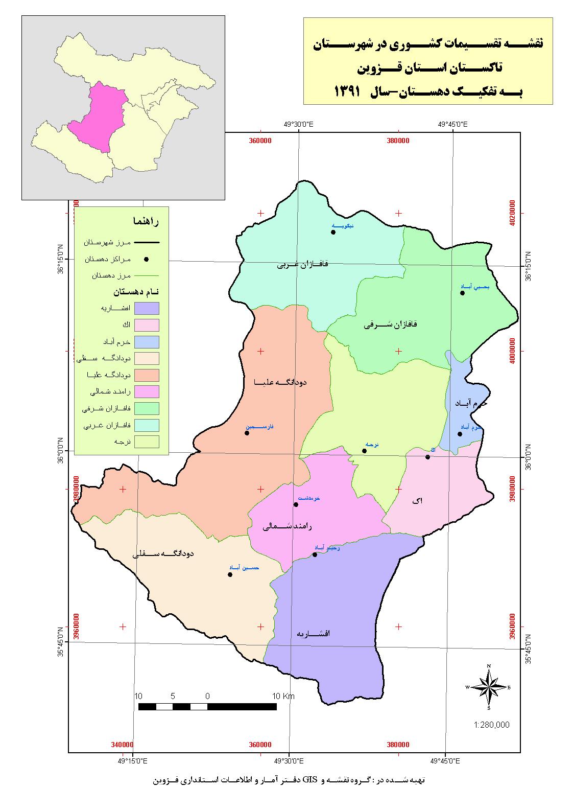 مشخصات جغرافيايي: مشخصات جغرافيايي تاکستان در باختر استان قزوين قرار گرفته و مرکز آن شهر تاکستان است. از نظرجغرافيايي در 49درجه و 42 دقيقه درازاي خاوري و 36درجه و 04 دقيقه پهناي شمالي و در ارتفاع 1265 متري از سطح دريا واقع شده است.