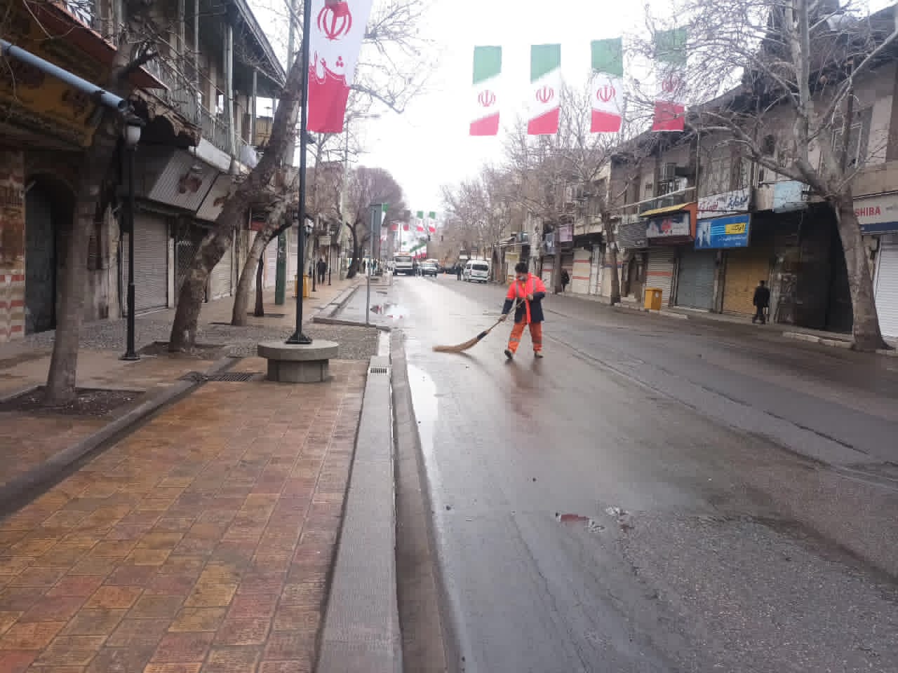 فعالیت ویژه پاکبانان برای رفت و روب و آماده سازی مسیرهای راهپیمایی باشکوه ٢٢ بهمن