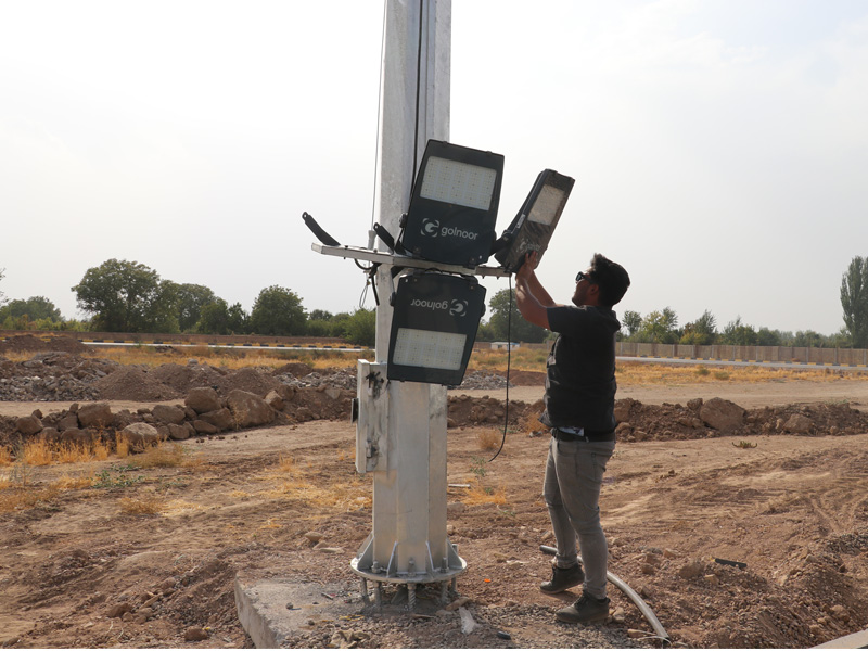 نصب چراغ های ال ای دی برج نوری در فاز سوم آرامستان بهشت فاطمه (س)