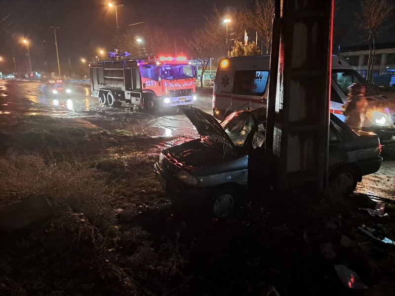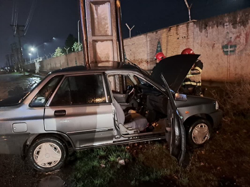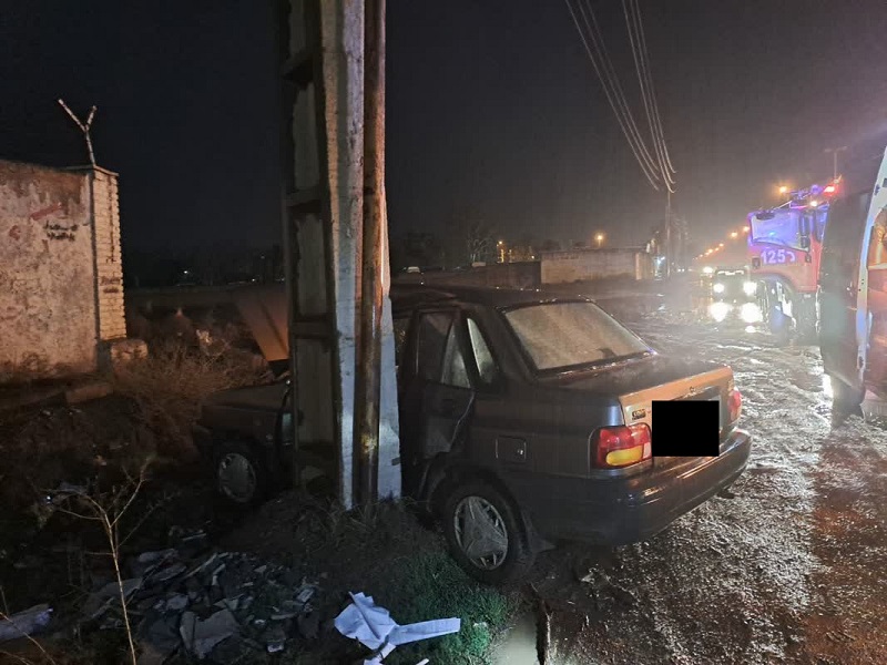 برخورد خودرو سواری پراید با تیر برق در جاده قدیم رشت به سمت قزوین