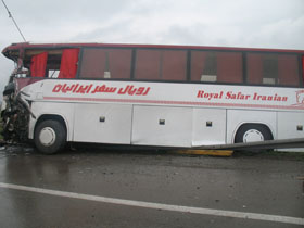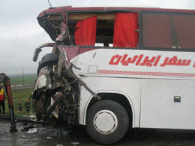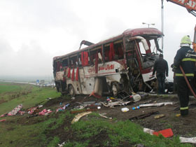 انحراف اتوبوس بنز و برخورد با تير برق لاين مياني اتوبان و اتوبوس ولوو 6 کشته و 15 مصدم بر جاي گذاشت.