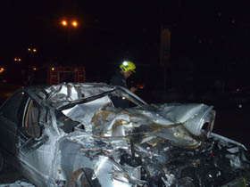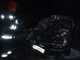 برخورد يک دستگاه کاميون تريلي با خودروي سواري منجر به شعله ور شدن خودرو پژو 405 شد .