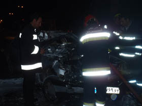 وي ادامه داد : در اين حادثه راننده خودروي پژو به علت شدت حادثه و مصدوميت در خودروي شعله ور خود محبوس شده بود که با حضور نيروهاي آتش نشاني ايستگاه 6 اطفاءحريق و 3 امدادو نجات حريق خودرو مهار و سرنشين آن از خودرو خارج شد.