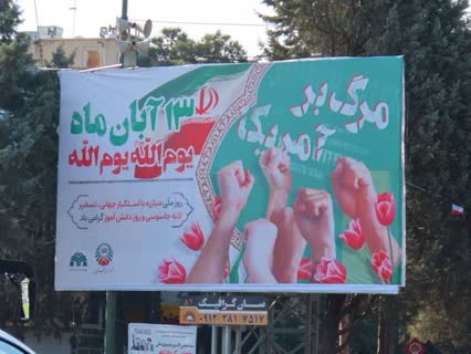 به گزارش روابط عمومی سازمان زیباسازی شهرداری قزوین؛ علیرضا منجم ضمن تبریک فرا رسیدن ۱۳ آبان روز دانش آموز افزود: به منظور گرامیداشت سالروز تسخیر لانه جاسوسی آمریکا توسط دانشجویان و دانش آموزان پیرو خط امام و با هدف ارج نهادن به شجاعت و شهامت تاریخ سازان روز سیزده آبان، سازمان زیباسازی اقدام به نصب بنر، بیلبورد و پرچم بر روی سازه های محیطی در معابر پرتردد شهر کرده است.