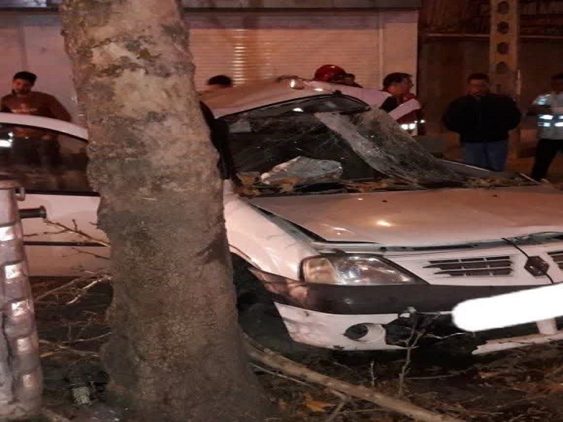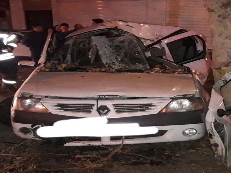 برخورد شدید خودرو سواری ال نود با درخت در بلوار شهید بهشتی قزوین