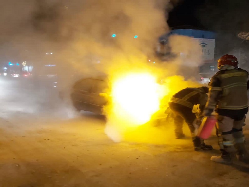 آتش سوزی خودرو پژو ۴۰۵ با وجود ترافیک سنگین توسط آتشنشانان قزوینی مهار شد