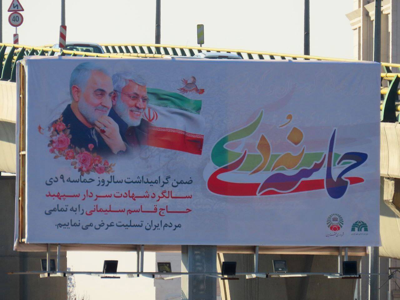 وی تصریح کرد: در همین راستا بنرهایی در ارتباط با حماسه یوم الله ۹ دی و سومین سالروز شهادت حاج قاسم سلیمانی در سطح معابر و میادین اصلی نصب شده است.