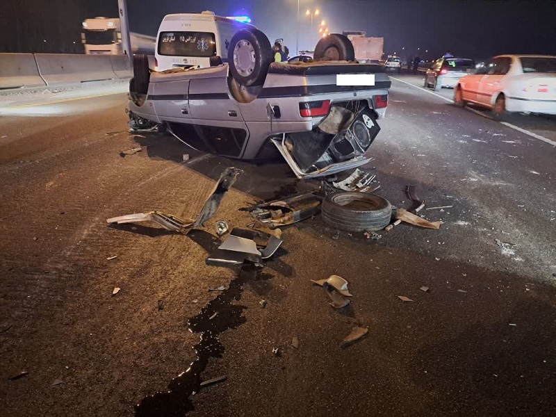 واژگونی خودروی سواری پژو ۴۰۵ در اتوبان قزوین _ زنجان
