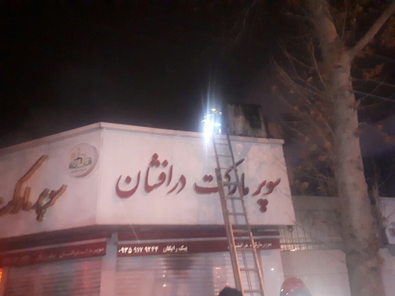 آتش سوزي مغازه سوپر مارکت در میدان عارف قزوين مهار شد