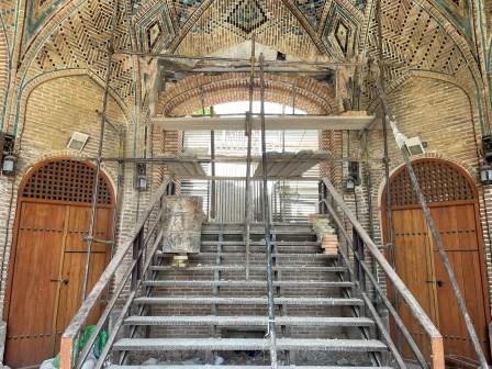 پیشرفت فیزیکی ۵۰درصدی مرمت سر درب سرای سعدالسلطنه
