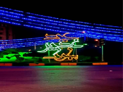 وی ادامه داد: همچنین به مناسبت عید غدیر ۲۰ سازه نوری با مضمون " علی" بر روی پایه چراغ های بلوار شهید لشگری و خیابان طالقانی جانمایی و نصب شد.