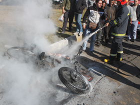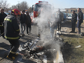 موتورسيکلت در ميدان سرداران قزوين آتش گرفت