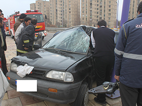 واژگوني خودرو سواري پرايد در محدوده پل شهيد رجايي قزوين