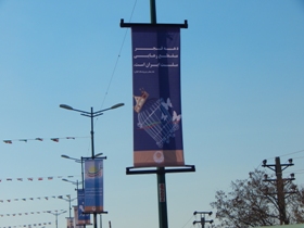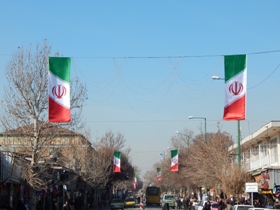 نصب 270 پرچم در محور خيابان امام خميني (ره) قزوين به مناسبت ايام الله دهه فجر
